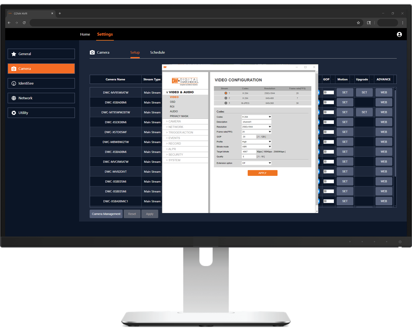 NO LOCAL MONITOR IS NEEDED! Simply plug in the COVA and open the DW Mobile+ App to add COVA to your myDW account. Your COVA uses a web-based cloud client experience accessible from any browser, with no VMS to download. And COVA comes with a full five year warranty.